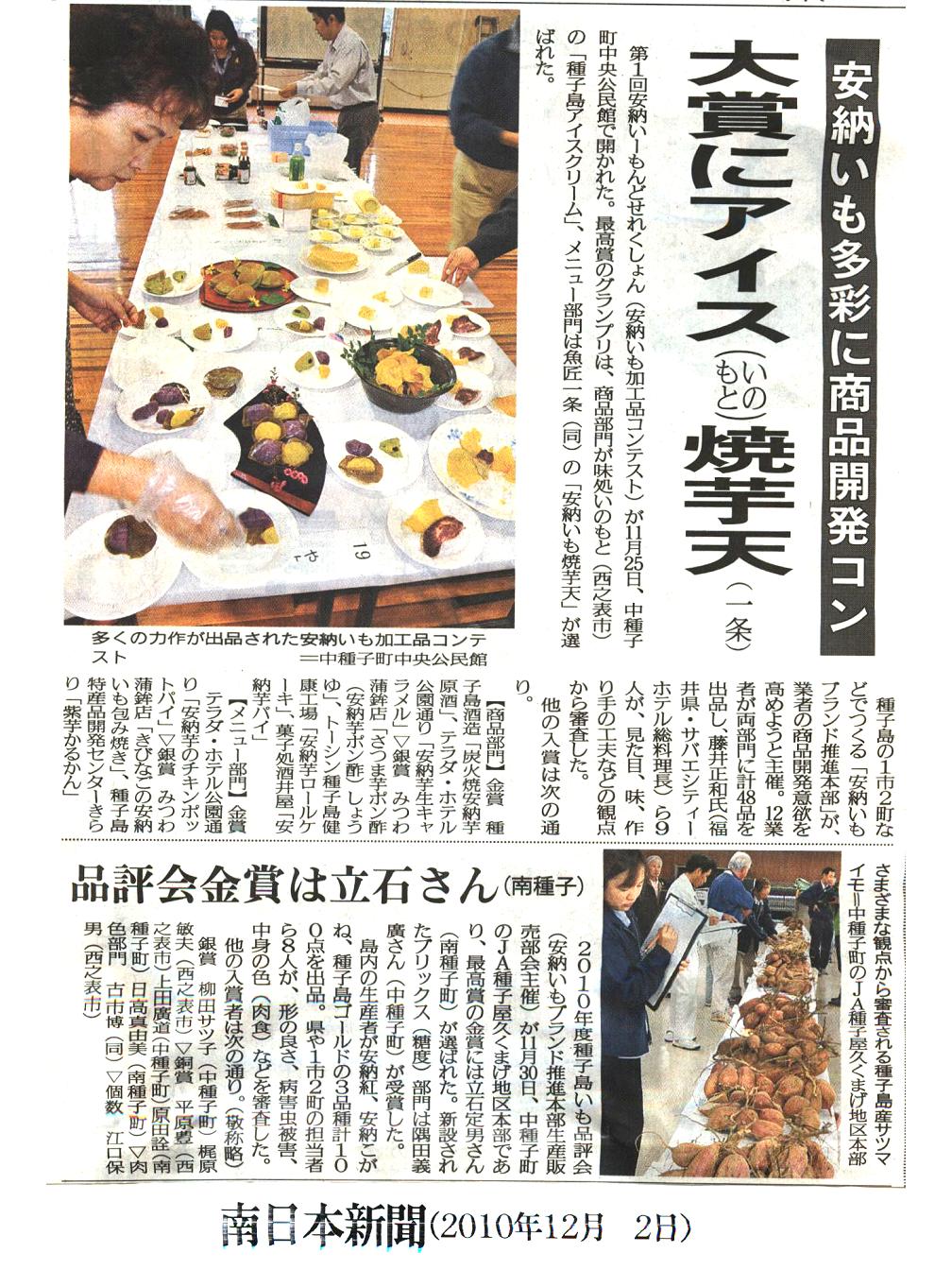 平成23年12月2日(金)に第2回安納い~もんどせれくしょん(安納いも加工品コンテスト)を開催します。