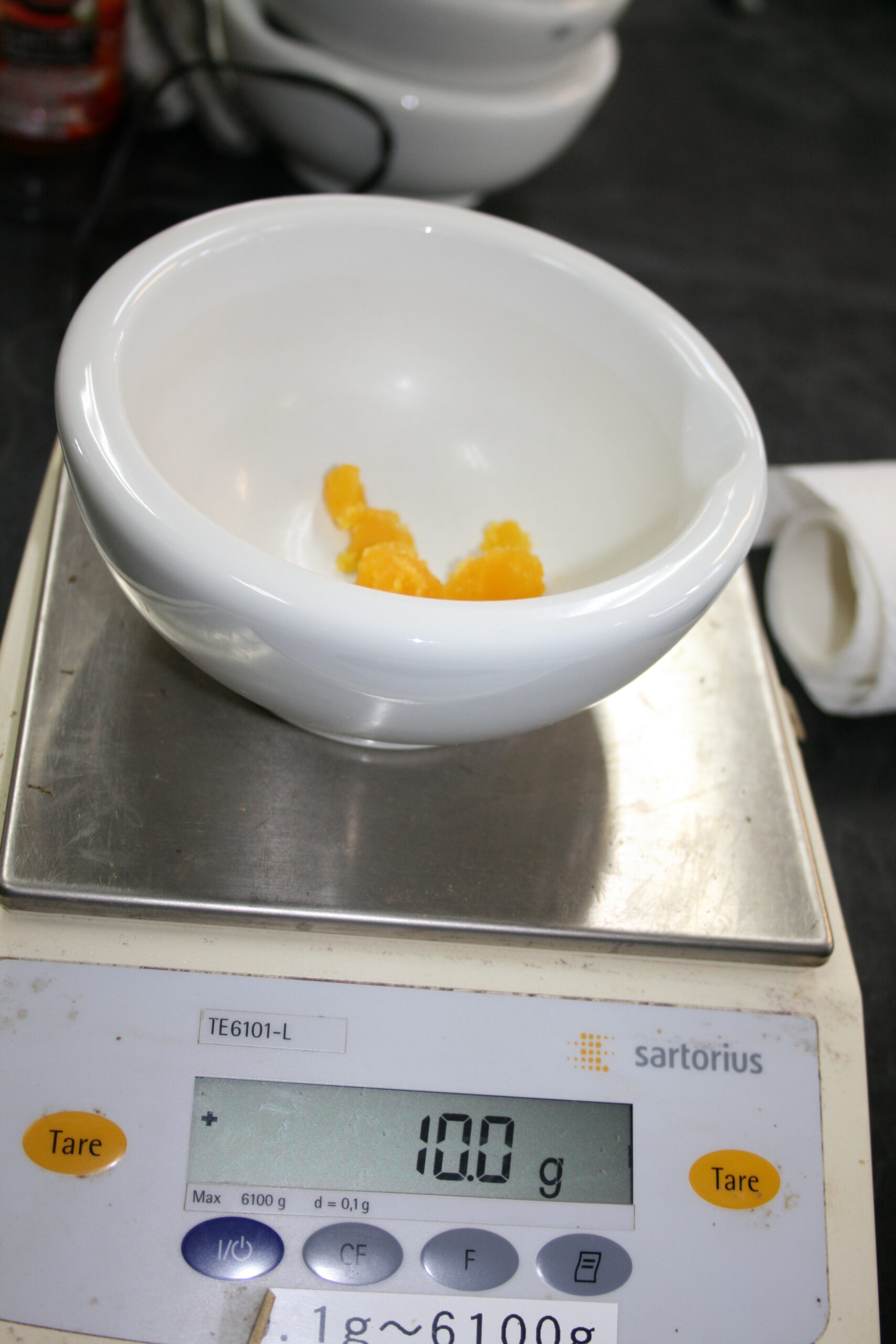 それから半分に切って、切った片方の中心部から5g、もう一方の中心部から5gをとり、
