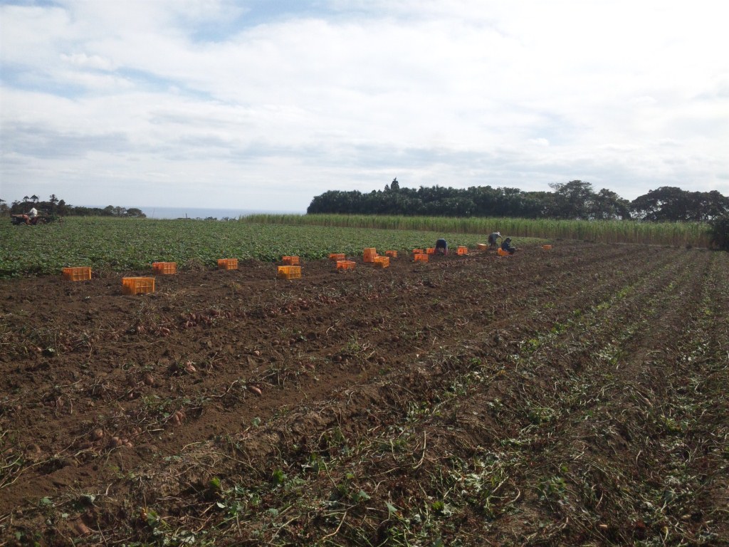 秋晴れの下,安納いもは収穫最盛期を迎えています。